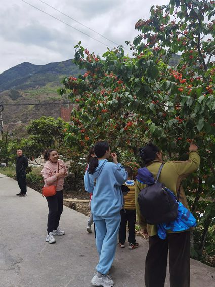 四月,櫻桃正紅,眼下有著春果第一之美譽的櫻桃已陸續成熟。走進瀘定的村村寨寨,道路邊、院墻里、田地里,晶瑩透亮的瑪瑙紅櫻桃再次掛滿枝頭,散發出誘人的甜香,吸引了不少游客前來采摘打卡。