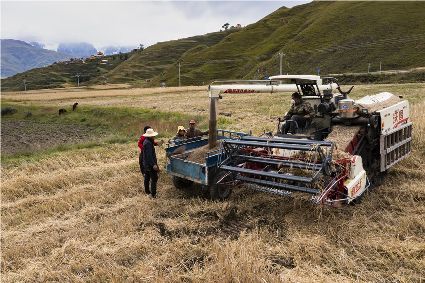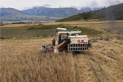 每年9月初,都是甘孜縣青稞收獲的季節。今年的秋收季已經開始,甘孜縣甘孜鎮斯俄片區的村民正忙著收割青稞。如今的雪域高原,農業生產已經基本告別人力耕作時代,實現了機械化耕作。今年甘孜縣的青稞長勢良好,有望成為又一個豐收年。