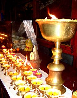 傳說(shuō)藏歷十月二十五日,是藏傳佛教格魯巴(俗稱(chēng)黃教)創(chuàng)始人宗喀巴大師圓寂成佛的日子。為了紀(jì)念這位杰出的宗教領(lǐng)袖,藏區(qū)各黃教寺廟和信徒于藏歷十月二十五日,舉行誦經(jīng)、磕頭,燈供儀式等隆重的祭祀活動(dòng),祭祀宗喀巴大師在天之靈和祈愿大師賜與善良的人們以吉祥幸福。