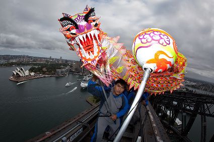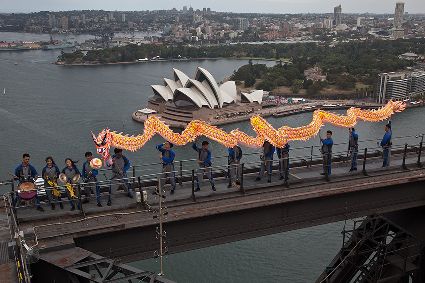 當日,由當地華人團體精心準備的中國傳統舞龍亮相悉尼海港大橋,拉開中國新年慶祝活動的序幕。