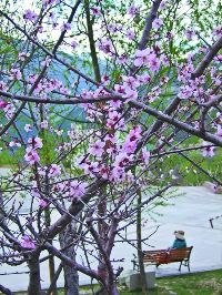 走在康定街頭,到處是瑰麗繽紛,成為街頭靚麗的風景線。走過樹下,撩人心扉,偶爾抬頭望望,或許你就能發現它的俏麗身姿。折多河沿岸,遍植了柳樹,眼睛放開在河的兩岸,都被春意的畫筆輕巧地抹了。輕輕,有如是女兒給眉的描,給唇的畫,給臉龐添的脂粉,很不經意,但又那么刻意、認真,不由得你心頭不溫婉起來,蕩起暖暖的一種氣息,和了柳梢上輕綠的飄動,直把那柳做了佳麗等待的那回眸一笑。