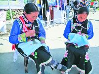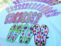 瀘定縣嵐安刺繡是純手工特色工藝品。1300多年前,羌族工藝就流傳于嵐安鄉,刺繡工藝便是其中一種。嵐安刺繡在操作上有平繡、牽繡 、挑花和納花;工藝分圖譜和剪紙,圖譜是繡大型的如圍裙、小兒抱裙、背心等,先勾畫圖譜,按圖配色選線再繡;剪紙是用蠶繭殼剪成圖形,再固定在所繡之物上,配色選線繡,所繡之物多為涉獵帽子、鞋子、婦女的針插子、扇插子等。主要繡字、花、草、樹、鳥、獸、昆蟲、山水等。全鄉有800余農戶,每戶都有一兩人會從事手工刺繡。刺繡產品可作贈送品、商品、旅游紀念品及各種裝飾品。(徐慧 文/圖)