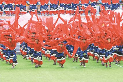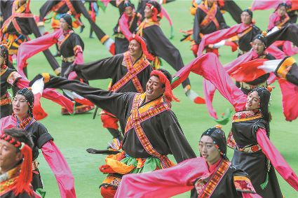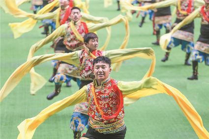 8月8日上午,康定北門體育場內歌舞升平、彩旗飄揚,第九屆康巴藝術節開幕式文藝演出在此進行最后一次帶妝彩排。本次彩排也讓我們對開幕式文藝演出充滿了期待。