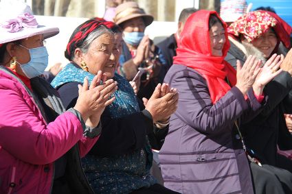 當宣講組一行來到郭沙寺時,寺廟僧人們早已迫不及待的等候在寺廟外。“聽說你們今天要來,我們全寺上下都很高興、很期待。”寺廟堪布甲它激動地說。