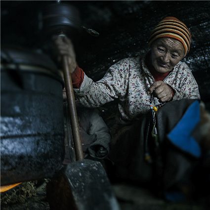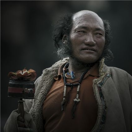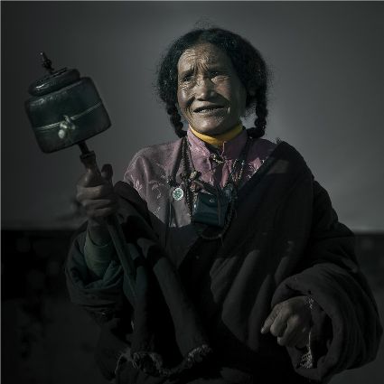 每當我手持相機時,對他們始終懷有一種敬畏,我捕捉到他們眼神里流露出虔誠。看著經筒上“甲多”的飛轉,我陶醉了,醉在那轉經筒的旋轉舞動,醉在那轉經筒傳誦的故事,醉在那一張張手持轉經筒的面孔,還有,還有因祈禱音符助推而從未停止的轉經筒……