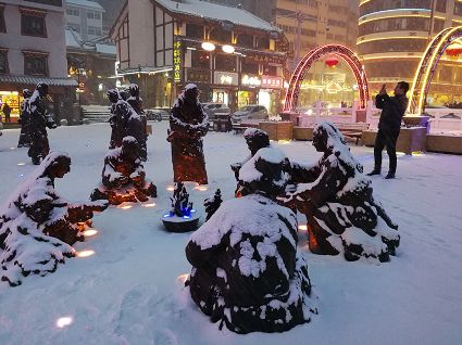 “風雨送春歸,飛雪迎春到。已是懸崖百丈冰,猶有花枝俏。”2月4日傍晚,大片大片的雪花,從昏暗的天空中紛紛揚揚飄落下來。霎時間,山川、河流、城市,全都籠罩在白蒙蒙的大雪之中。黃昏的雪,下得深切切的,好象有千絲萬縷的情緒似的,又像海水一般洶涌,能夠淹沒一切,還有一絲揭開藏頭露尾般的裸露感。雪花形態(tài)萬千、晶瑩透亮,好象出征的戰(zhàn)士,披著銀色的盔甲,又像是一片片白色的戰(zhàn)帆在遠航…… 落光了葉子的柳樹上,掛滿了毛茸茸、亮晶晶的銀條兒;冬夏常青的松樹和柏樹,堆滿了蓬松松、沉甸甸的雪球。那一片雪花在空中舞動著各種姿勢,或飛翔,或盤旋,或直直地快速墜落,鋪落在地上。“忽如一夜春風來,千樹萬樹梨花開”——這是雪的燦爛;一場瑞雪,扮美了康定,年味籠罩的康定城,嫵媚妖嬈。無論是背水姑娘、有著年味兒的將軍橋,還是大紅燈籠高高掛的康定門,都在雪后別有一番景致。與美景合影、和朋友玩雪都是最佳選擇。在風雪中,交警不畏嚴寒默默堅守崗位 ,指揮交通疏堵保暢。他們的身影在皚皚風雪路上站成一道道最美的風景,溫暖了康定。從早上六點開始,康定的環(huán)衛(wèi)工就迎著刺骨的寒風,開始了除冰雪保通暢的行動,在積雪覆蓋的康定城,早起的商販樂呵呵地做起了買賣;民工迎著雪后的寒風出門務工,他們是最可敬的人。