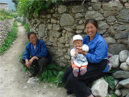 那天清晨,我們一行就乘坐曉雨哥所開轎車從康定城出發了。從顯得很懸的山路上到位于山頂平壩的嵐安古鎮時,才8點過一點。朝鎮里走去,先后見到了從地里背洋芋回家的小孩、從地里收了豆菽枯藤的中年人等。