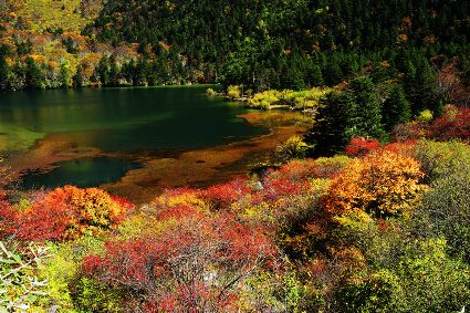 木格措(野人海)作為景區的核心景點之一,如同一塊珍貴的寶石被四周的森林和大小海子環繞。