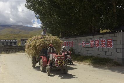 “我們要利用這段晴好的季節,抓緊收割。”在廣袤的原野,村民們開鐮收割青稞,一輛輛滿載成捆青稞的拖拉機在田間和鄉村小道上歡快地疾馳。
