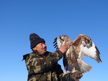“古時候鷹做為人類的朋友,幫助主人捕野兔捉野雞。”訓鷹人說。
