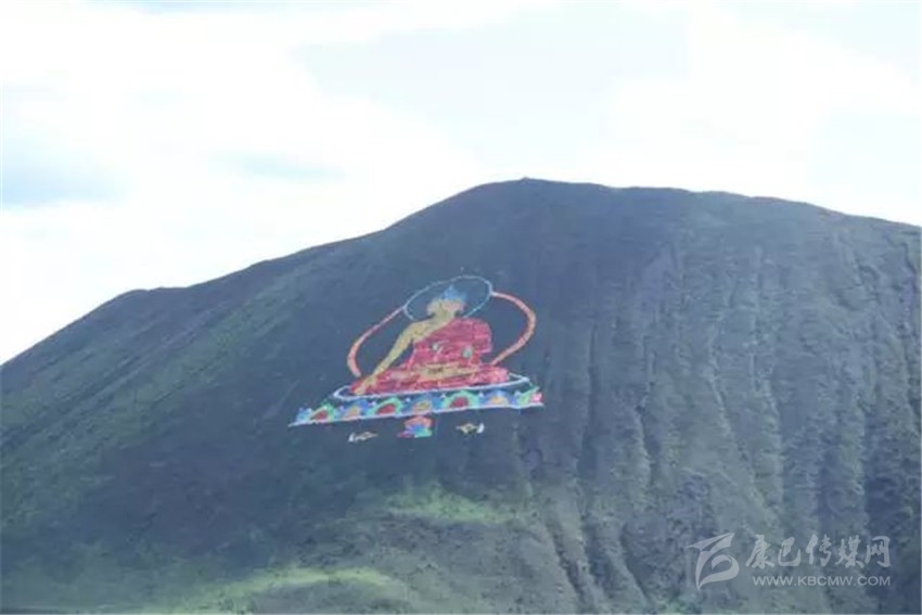 看,佛主正在向我們微笑,這尊巨大的佛像是由然梯寺的活佛使用4萬根經幡,在沒有使用任何輔助工具的情況下花費一個月的時間創作而成。每當風吹過,大佛就會隨風飄舞。就如同在向四面八方散發佛光一樣。