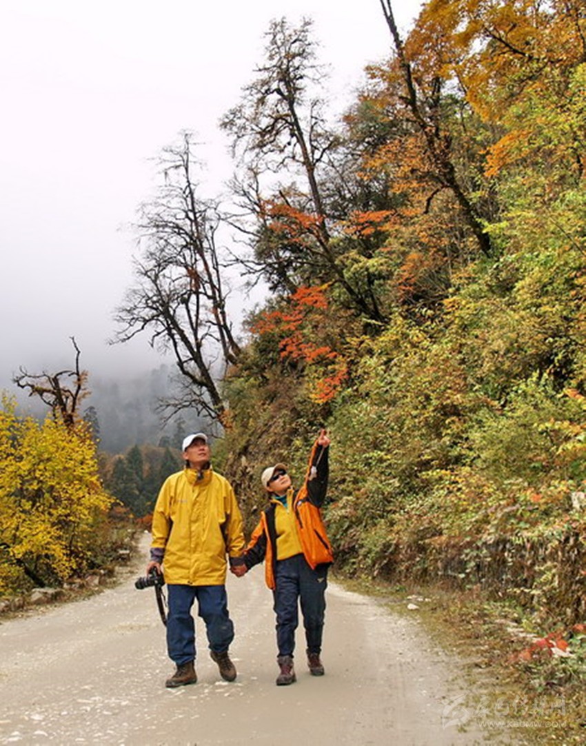 在秋日的呢喃中,海螺溝密林中的楓樹、連香樹、槭樹、樺樹等百余種植物搖曳身姿,各顯其態,放眼望去,紅的、黃的、紫的、橙的、綠的,各種色彩錯雜其間,美麗至極。其間最顯風姿的當然要屬紅葉,每當寒霜初降,“楓”情萬種的海螺溝便成為眾多“紅葉迷”觀賞紅葉、探奇攬勝的絕佳去處。在海螺溝地區觀賞紅葉的最佳時間是9月底到11月底,最佳地點是海螺溝景區一號營地(9月底-10月中旬)、二號營地(10月中旬-10月下旬)、草海子(10月中下旬-11月初),燕子溝景區(10月中旬—11月中旬)和雅家埂(10月下旬—11月下旬)。長達兩個多月的紅葉觀賞期,是夢幻的天地,層林盡染、絢麗多姿的秋天,是海螺溝呈現給世人最好的禮物。