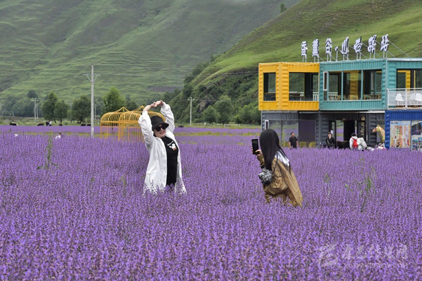 是時,微風乍起,黛山環抱下的花海漾蕩著瀲滟的紫光,裹挾著無邊的浪漫和淡淡的芳香,向棧道上的游人涌來,彌漫到腳邊、四溢到身旁——踏訪這個藏在川西高原的“普羅旺斯”詩境實地,一幅美不勝收的“夏日高原送爽圖”令人心迷神醉。