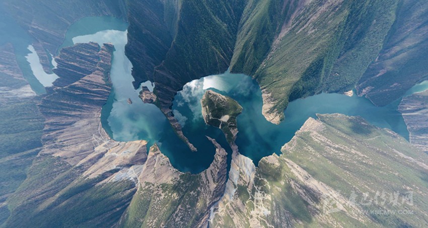 天龍湖是一個向上的世界,這世界被山水抬舉。記者從最佳視角——位于峽谷核心區普巴絨鄉比貢寺所在的山脊俯瞰,“九曲回腸”的一灣灣碧水在瘦削相對的青山之間,串連似珠玉,蘊翠含黛、峻峭生姿。