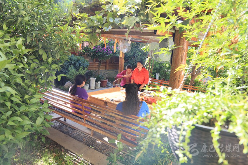 瓦卡鎮180戶全為災后重建戶,全是后屋前院,戶戶種菜養花,人人閑情逸致,一到豐收季節,家家瓜果飄香。隨便推開一家院子的大門,總會受到熱情招呼,主人會從樹上摘下香梨、從架上摘下葡萄,讓你品嘗。