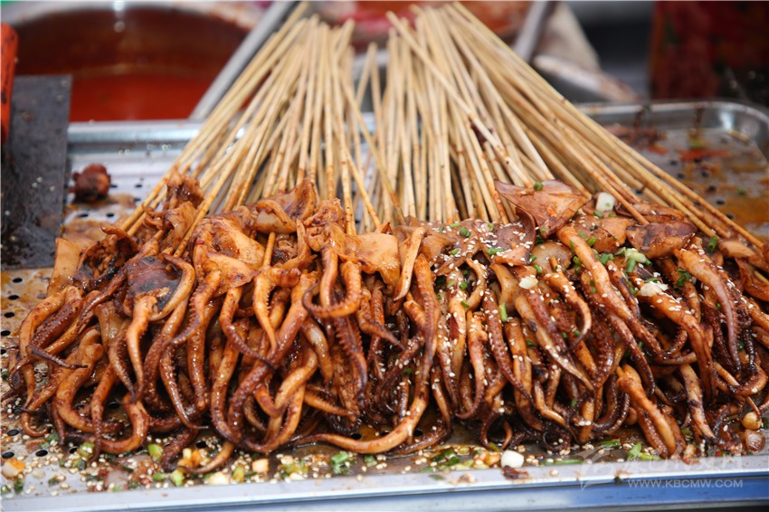 作為一個四川人,對于麻辣味的食物毫無抵抗力,在康定后街林立的商鋪中,記者一眼就相中了“深海魷魚花”這家店。看著泛著紅油的魷魚花靜靜地躺在紅椒和芹菜間,記者咽了咽口水,向老板買了一份兒。“真是純純的川味兒沒錯了,又麻又辣的。”記者對老板說。老板回答到:“魷魚花最講究的就是刀法了,要切得好看。雖然在顧客看來都差不多樣子,但是我每次都要經過細細斟酌再一刀一刀的切,爭取多弄幾種樣式,現在我的常客們也會細細地考究我切的魷魚花了。以前我只賣烤魷魚,只是在家里偶爾會給我兒子做魷魚花,后來看我兒子喜歡吃,才開始慢慢地賣魷魚花,沒想到還是很受歡迎。這次美食節,我發現沒有人做魷魚花,所以我就帶著我兒子喜歡的魷魚花來參加這次美食節了。”老板笑著跟記者說。