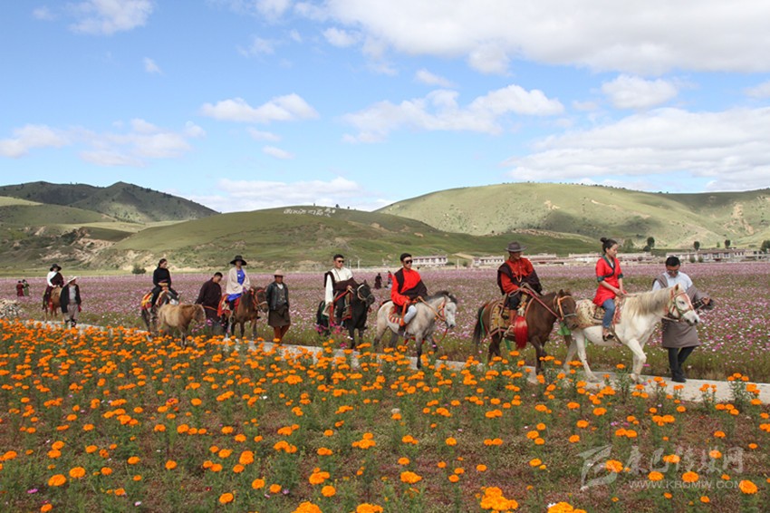 過去的漢戈村曾經是貧困村,2016年,當地利用國家投入的重點生態功能區轉移致富資金1100萬元,打造了花海景觀,解決村民就業1200余人次,鼓勵村民依托國道227線穿村而過的交通優勢,借助花海發展帳篷民宿,騎馬、射箭等具有藏族特色的旅游產業,每年吸引游客5萬余人,漢戈村人均增收2800多元。