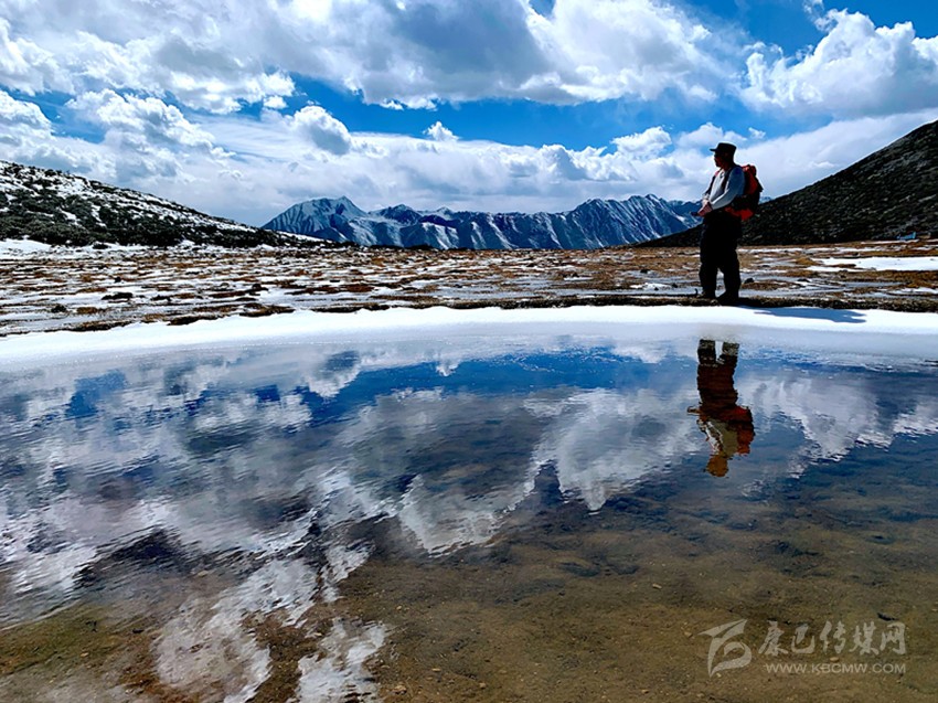 迷魂凼可以看見貢嘎衛(wèi)峰五色山系及貢嘎主峰周邊的愛德嘉峰、嘉子峰、日烏且峰和小貢嘎。在季節(jié)性小湖邊,湖面倒影著雪山,仿佛一幅絕美的風(fēng)光畫,走進(jìn)其中,便成了畫中的一部分。