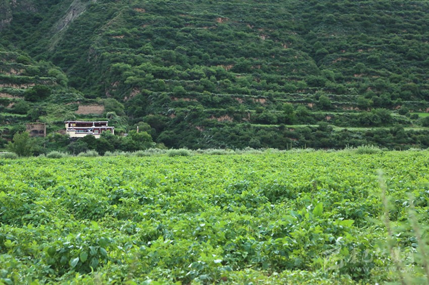 它們主要是輕柔嬌媚的虞美人花,就種在呈間隔距離分布、形若酥油燈盞的花壇里。