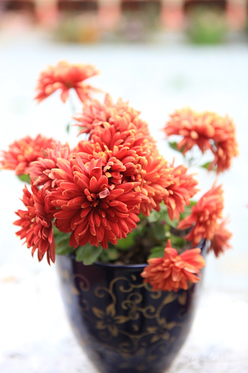 走進南無寺的大四合院,正在群開的花有格?;?、大麗花、孔雀草、菊花。紹英到大殿參觀的時候,我就湊到四合院庭院邊上的花壇前去拍花了。