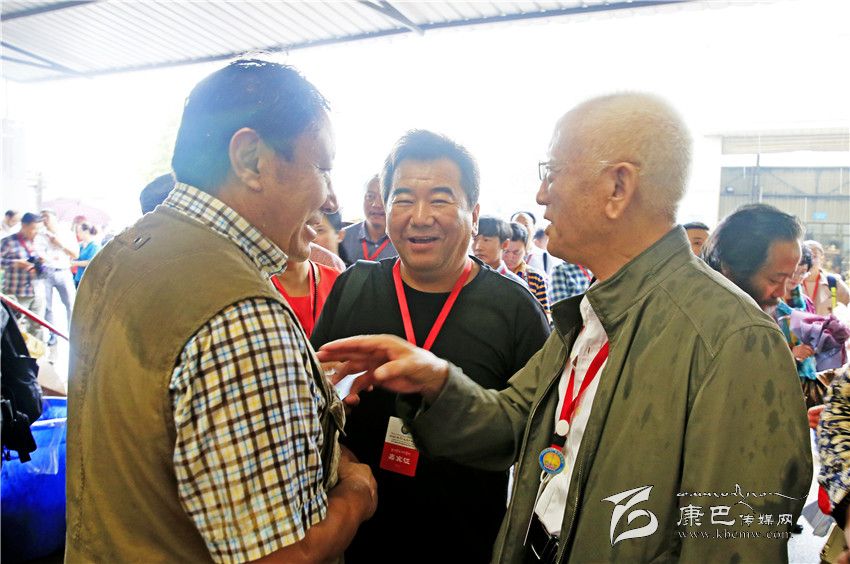根秋扎西正在與中國社科院降邊降措和全國格辦主任諾布旺丹交流。