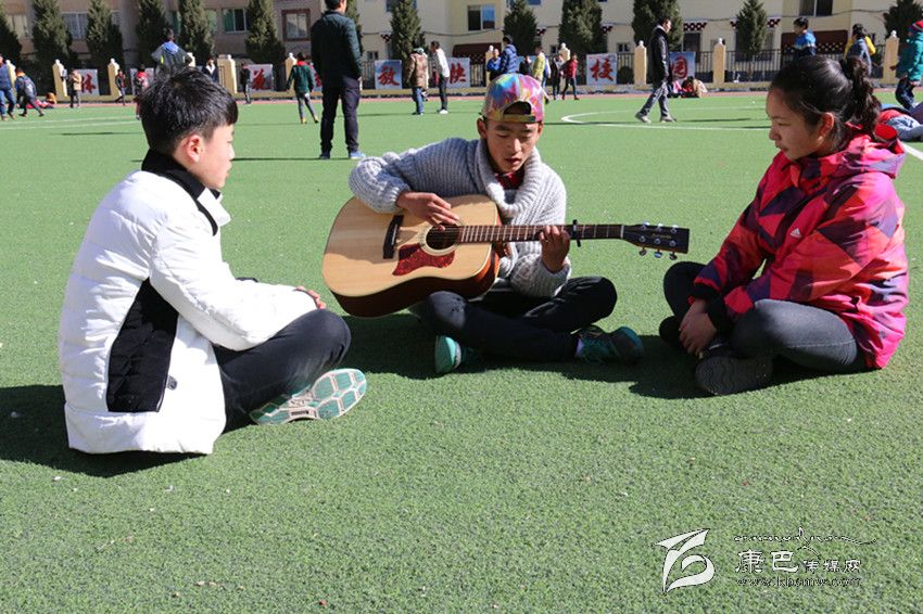 “白云下一座溜溜的城/聽著溜溜的歌聲/李家那溜溜的大姐喲/溜溜愛上藏家大哥喲/尋夢在溜溜的跑馬山/我推著金桶溜溜轉/折多河溜溜穿城過喲/頌經聲溜溜的傳承喲/悠揚琴聲在溜溜小城/我溜溜等待著愛人/跑馬山龍打溜溜撒喲/心就在溜溜城中活……”最近一首名叫《溜溜》的歌曲刷爆了記者的朋友圈,不到一天的時間點擊率達到12000多,干凈的嗓音碰上吉他、貝斯等流行元素,給聽眾帶了一種不同的音樂享受。《溜溜》的詞曲作者周麒(當然他也是原唱之一)和主唱昂汪央金拉姆、周楠都是來自康定中學的學生,在冬日的午后,記者在康定中學的籃球場見到了這三位一臉天真的原創者。初見記者,他們還有一些靦腆、緊張,但是一談到音樂,他們立刻有了說不完的話。