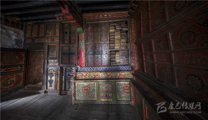大廳右手邊是薩迦教派的經(jīng)堂,經(jīng)堂內(nèi)的雕刻藝術(shù)造型逼真精工細雕,十分考究,具有極高的藝術(shù)欣賞價值。自麥經(jīng)堂整體建筑風格既有稻壩古老建筑風格,又有皇家建筑風格。墻體上繪有白塔和佛像等藏式壁畫,具有較高的歷史、文化和科研價值,是一座具有深厚歷史底蘊的宗教文化藝術(shù)殿堂。