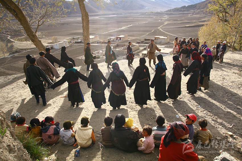 弦子又名為“協(xié)”,在甘孜縣境內(nèi)有孔薩協(xié)欽、仲薩協(xié)、格達(dá)協(xié)、郎扎協(xié)等,其中白利寺五世格達(dá)活佛創(chuàng)建于二十世紀(jì)三、四十年代的格達(dá)弦子尤為著名,跳此舞無時(shí)間規(guī)定。起初用此歌祭祀亡魂、超度靈魂、免荒災(zāi)。以后逐漸豐富其內(nèi)容而流傳于民間。表演時(shí)無伴奏樂器,起舞時(shí),男女兩隊(duì)輪歌共舞,圍成圓圈,相對而立,男女舞者統(tǒng)一著樸素藏裝,男舞者抬頭,頭戴金氈帽, 身著“氆氌”衣,但不配戴腰刀;女舞者低頭,扎小辮子,身著“氆氌”衣,腳穿藏鞋,沿著弧線,先慢后快,邊歌邊舞,舞蹈的腳步動(dòng)作矯健,帶有“夏卓”的風(fēng)韻。格達(dá)活佛的詩歌,具有藏族文學(xué)的新內(nèi)容和新思想,每當(dāng)節(jié)日人們就在優(yōu)美的旋律中盡情起舞,格達(dá)弦子的詞、曲均由格達(dá)活佛創(chuàng)作。