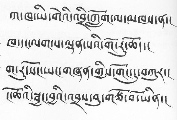 吐蕃時期還產生了密文體、伏藏體、幻妙體等許多書體。佛教分為顯宗和密宗兩大修行范疇。密宗傳入吐蕃是在公元八世紀,是印度佛教大師蓮花生傳入吐蕃的。密文體是蓮花生和他的吐蕃密妃康卓益西措杰創新的專門用于記錄書寫密宗典籍的特殊書體。雖然,其形狀與通行的藏文書體不太一樣,但是其拼寫讀法、文法、正字法等均與通行的藏文一樣。因此,密文體是藏文的一種特殊的書體。密文體有十幾種。佛教的傳播過程中,常常遇到 挫折,因此,為了避免佛法失傳,佛教徒常將佛教典籍埋入地下,稱為伏藏。其目的是以備日后的佛教徒掘藏佛經,繼續宏傳佛法。伏藏體正是專門用于書寫伏藏經文的特殊的藏文書體。伏藏體也有十幾種書體。