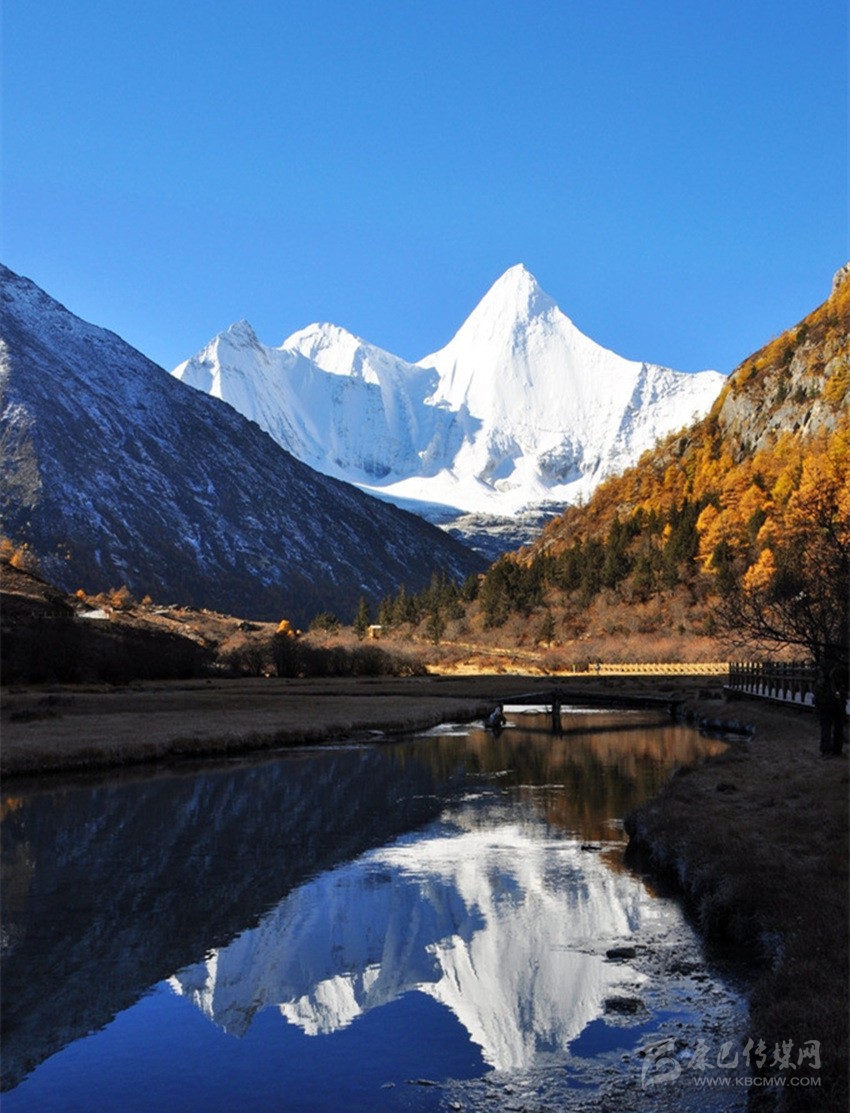 央邁勇,意為“文殊普薩”,海拔5958米,是“三怙主神山”的南峰;狀若一位斜倚在大榻上笑對世界的閑靜處子;在佛教中是智慧的化身。1928年,當美國探險家約瑟夫·洛克先生在云南與稻城毗鄰的崇山峻嶺中遙望央邁勇時,一種被它圣潔、高貴的氣質(zhì)所折服的情感也隨之降臨了;他在日記中由衷感嘆,“央邁勇是我見到的世界上最美的山峰”。