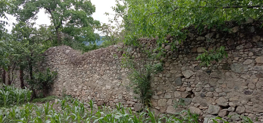 在鄧明前老師的帶領下,記者沿小路往大渡河方向而行,不久即看到一面石頭砌成的圍墻。鄧明前老師說,那即是茶倉遺址了。