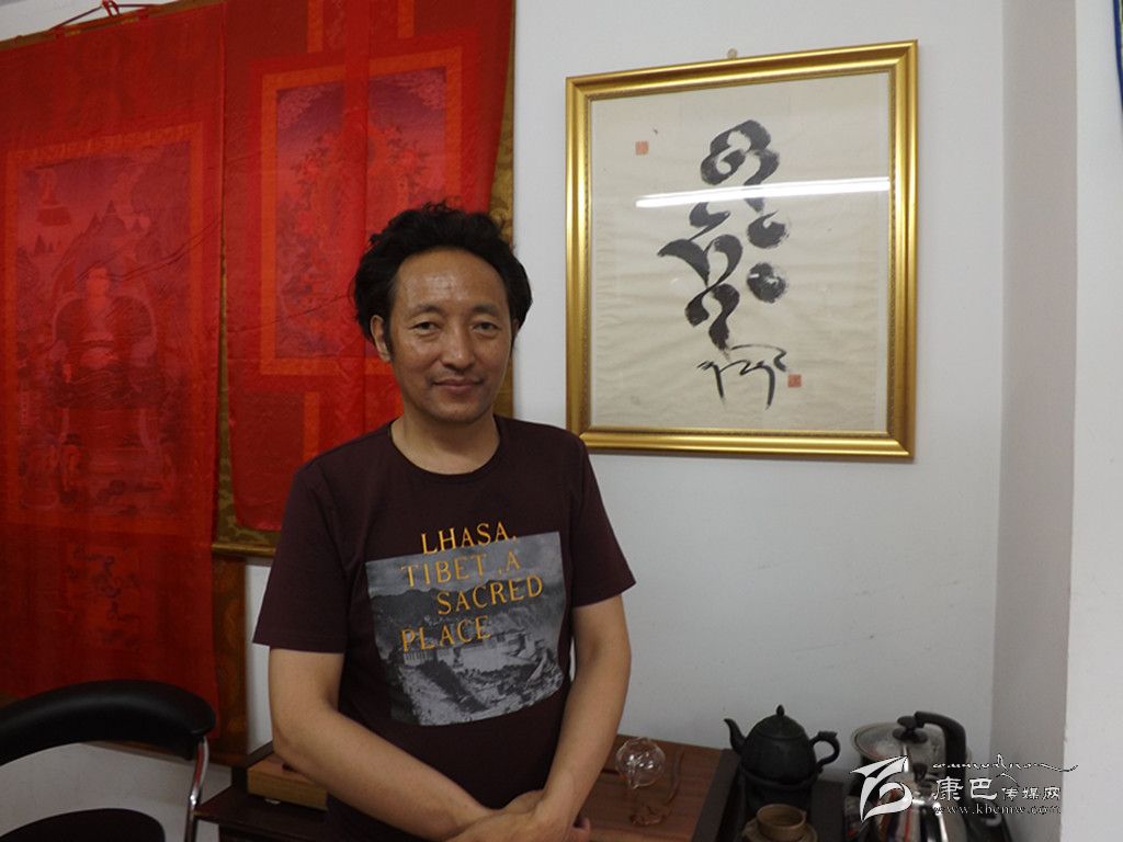 但10年來,嘎多仍然樂此不疲地寫著,累了他就坐在工作室喝一口茶,然后繼續他的藏文書法創新之夢。努力有了回報,嘎多的創新漸漸有了收獲。