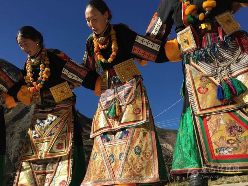 稻城蒙自鍋莊古樸典雅,表演時分男女兩隊輪唱輪舞。舞蹈時相互牽手或扶腰,低首俯身,舞姿低矮,上身動作較小,主要動作集中在腿部的踏地和靠腿。