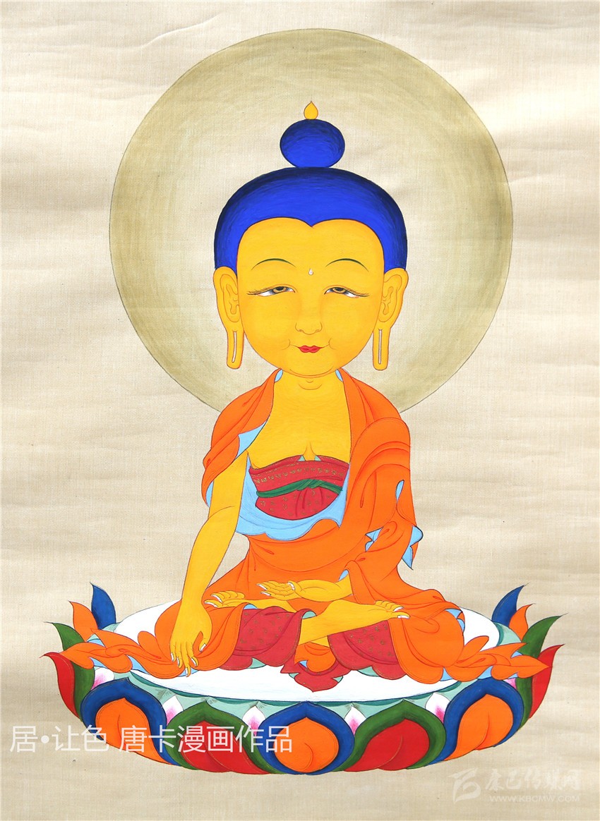 從小熱愛繪畫的他從沒放棄對傳統唐卡繪畫藝術的學習與追求,在多年的繪畫過程中,他不斷嘗試不同的藝術形式和繪畫風格,最后將漫畫與唐卡繪畫相互融合,開創了唐卡漫畫的全新繪畫形式。