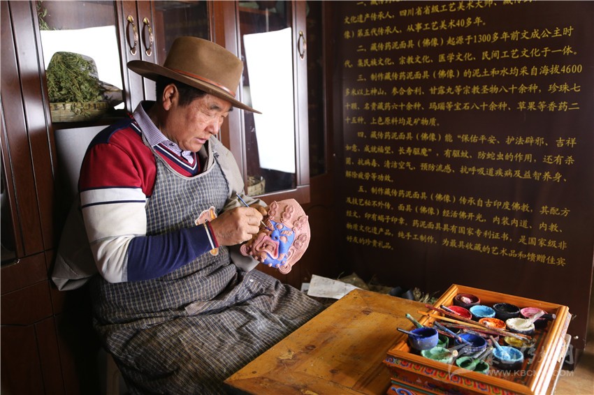 作為一名旅行者,四龍降澤老人熱情地接待了我,他是新龍縣人,因為妻子是道孚人,退休后隨妻子在道孚生活。從14歲開始學習制作藥泥面具,迄今為止已經有了50年的制作經歷,手藝愈發成熟,其中一句“藥配好了是藥,配不好就是毒”讓人印象深刻,因為到來的時間恰巧,有幸見到大師制作藥泥面具的過程,算是這場沖動旅行的意外驚喜。