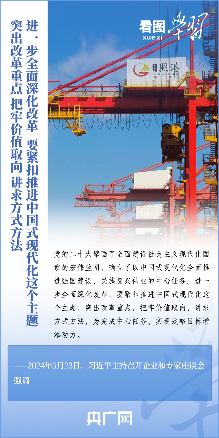 改革是發(fā)展的動力。5月23日,習(xí)近平總書記在山東濟(jì)南主持召開企業(yè)和專家座談會并發(fā)表重要講話。總書記強(qiáng)調(diào),進(jìn)一步全面深化改革,要緊扣推進(jìn)中國式現(xiàn)代化這個(gè)主題,突出改革重點(diǎn),把牢價(jià)值取向,講求方式方法,為完成中心任務(wù)、實(shí)現(xiàn)戰(zhàn)略目標(biāo)增添動力。一起來學(xué)習(xí)!