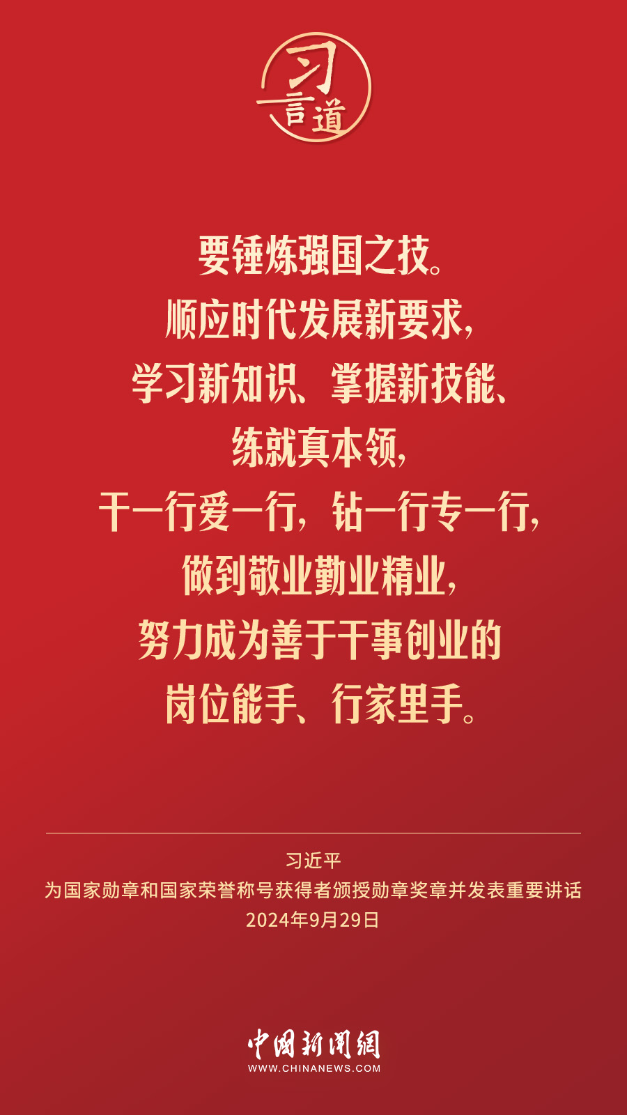 經中共中央批準,中華人民共和國國家勛章和國家榮譽稱號頒授儀式于9月29日上午10時在人民大會堂隆重舉行。中共中央總書記、國家主席、中央軍委主席習近平向國家勛章和國家榮譽稱號獲得者分別授予“共和國勛章”“友誼勛章”和國家榮譽稱號獎章并發表重要講話。習近平指出——