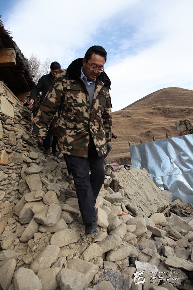益西達瓦在道孚縣八美鎮中古村察看災情。