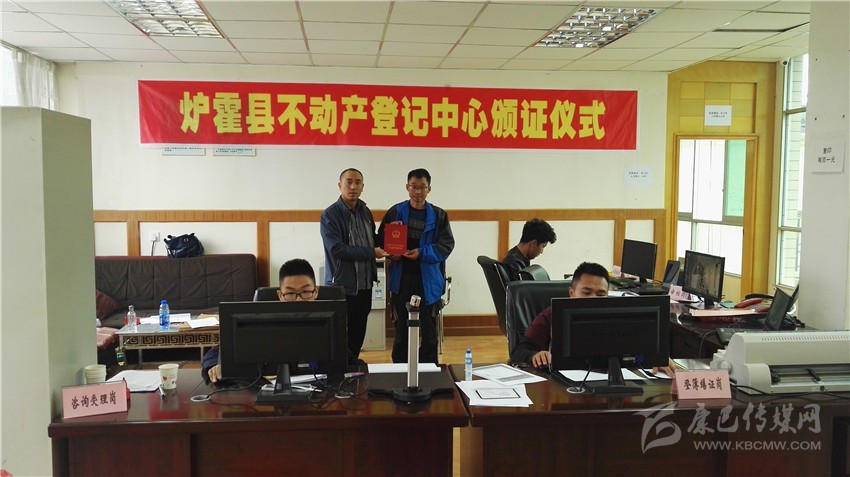 圖為我州爐霍縣頒發首張不動產登記證。(州國土資源局 供圖)