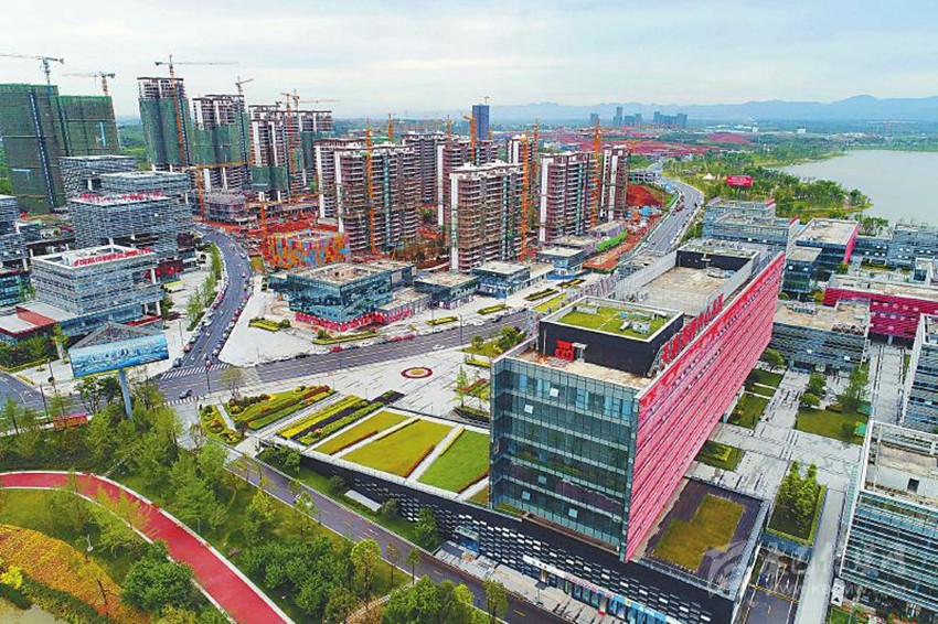 5月3日,“喜迎黨代會 天府新飛躍”全國主流新媒體瞰四川大型采訪活動首站走進成都市。圖為航拍的天府新區成都直管區的成都科學城。 姜曦 攝