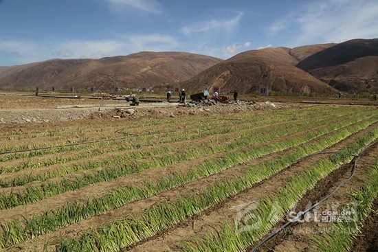 本網訊(張德禧 徐登林) “3月份,我家的9畝土地就流轉給農場了,每畝每年630元,我每月在大蔥基地打工有2000元收入,老公出去務工,一家人一年的收入增加還學到技術。”5月16日中午,道孚縣陽光燦爛,照耀著高原漸綠的青草,也喚醒了田野里變青的蔥苗,48歲的麻孜鄉溝爾普村村民青芝翁姆在大蔥基地邊澆水邊說,大蔥再有一個多月就能上市了。