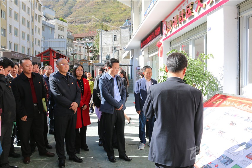 會前,劉吉祥出席了瀘定縣沙壩社區委員會揭牌儀式,并同與會同志參觀了瀘定縣沙壩社區“大黨委”建設、電力公司國企黨組織建設、瀘橋鎮便民服務中心建設、縣法院機關黨組織建設。