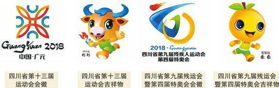 四川省第九屆殘運會暨第四屆特奧會會徽:會徽圖案融入舉辦地廣元首字母“G”、數字“9”、“拼搏的殘疾人運動員”等元素,體現“為生命喝彩向極限挑戰”的設計主題。