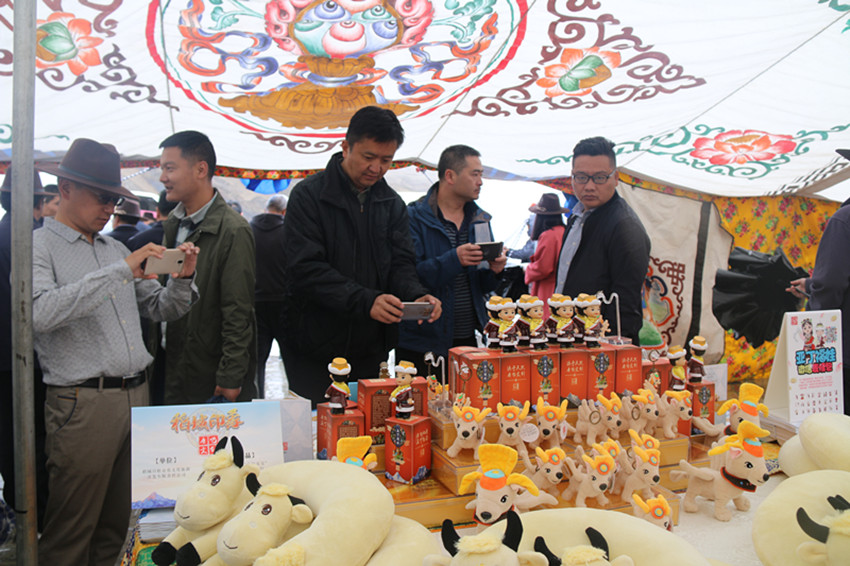 色拉鄉村旅游綜合體內展示的稻城文創產品引來眾多參會者圍觀。