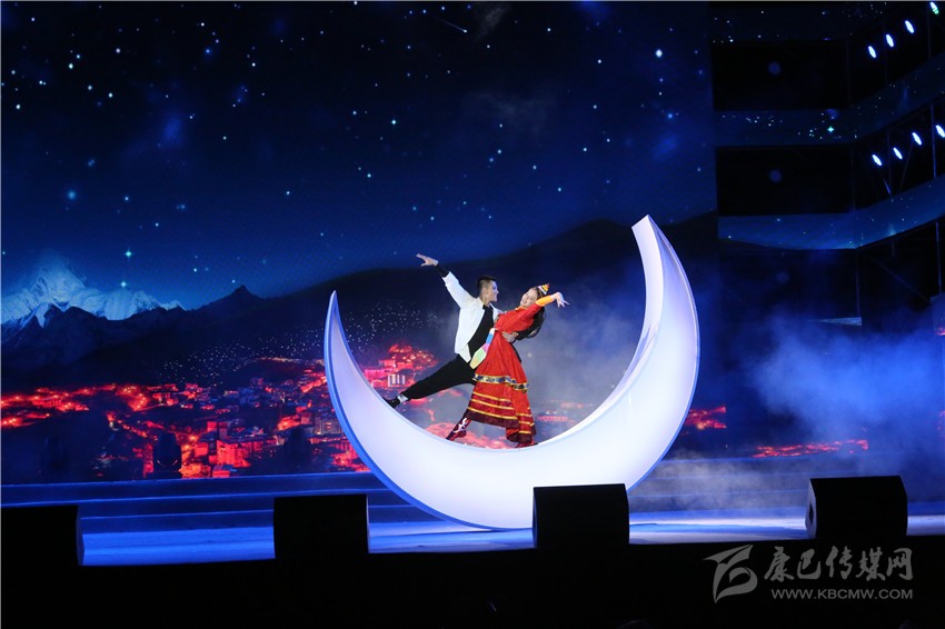 說唱《康定情歌》并配以街舞是本劇目對《康定情歌》演繹形式的大膽創新。演出中,幾名穿著時尚、朝氣蓬勃的青年,用歡快的節奏、靈活的動作,展現了《康定情歌》的深厚內涵,也宣傳了康定的城市特質。獨具一格的表演讓人耳目一新、深受感染,體育場內歡呼不斷、吶喊震天,觀眾的熱情與演員的激情互相激蕩,久久不絕。