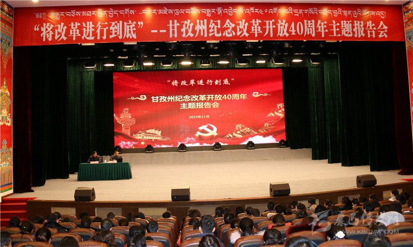 本網訊 昨(21)日上午,由州委宣傳部主辦的我州慶祝改革開放40周年“將改革進行到底”主題報告會在康定劇場舉行。來自州委各部委、州政府各部門、省州屬行政企事業單位以及康定市機關干部職工代表共計500余人聆聽了報告。