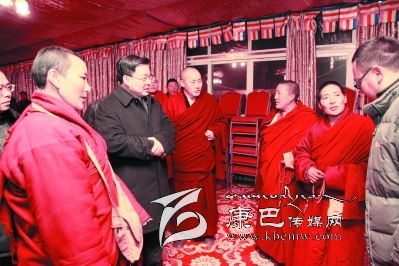 火災發生后第一時間趕到現場的省委統戰部、省宗教局工作組領導以及州委副書記、政法委書記向秋,副州長唐強,州民政局、州住房建設局和色達縣主要領導參加了慰問。