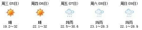 5日白天開始一直到9日,以多云天氣為主,其中7日晚有陣雨,日最高氣溫在30度上下,天氣比較舒適,不會出現高溫天氣,高考和端午節期間天氣還是比較給力: