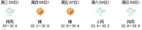 雖然明天太陽有點兇,但7日、8日、9日三天陣雨及時出現,日最高氣溫穩定在30℃附近。