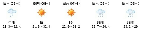 5日開始一直到9日都是多云到晴的天氣,日最高氣溫27℃左右。每天都有陣雨(小雨),考生出行應防山地災害。